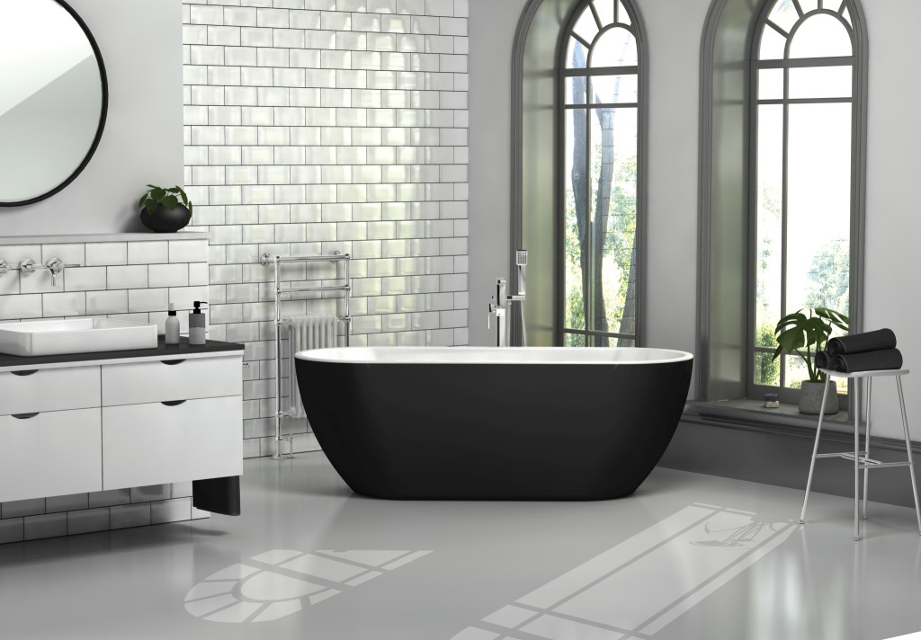 Noir Matt Black D Series Floor Standing Bath Shower Mixer with Shower Kit