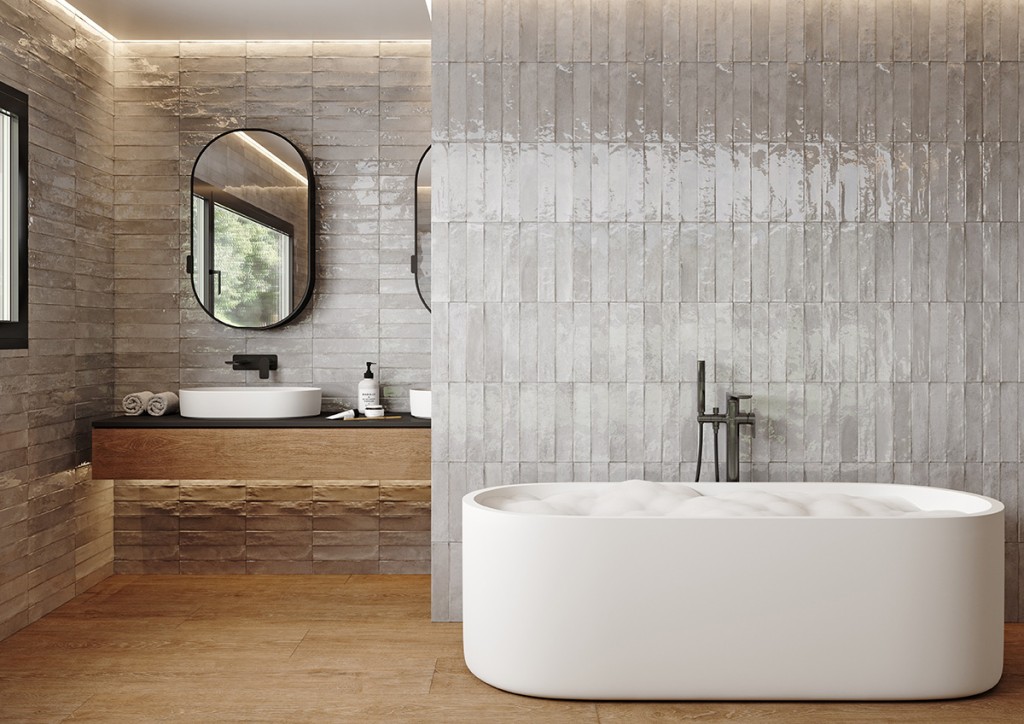 Beaumont Fog Grey Brick Porcelain Floor and Wall Tile 300x600mm