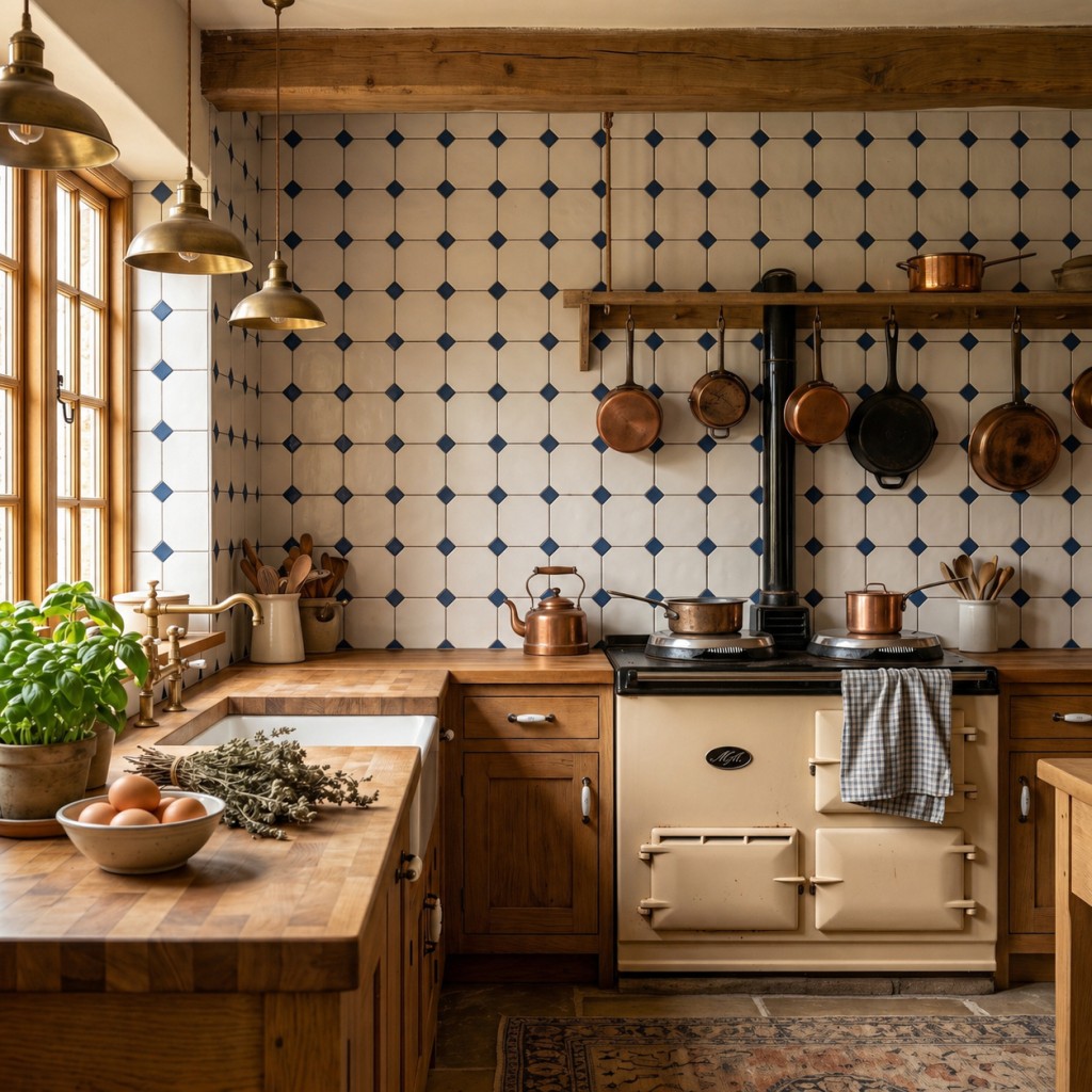 Cotswolds English White Gloss Octagon Ceramic Wall Tile 150x150mm with Oxford Blue Taco (Insert)