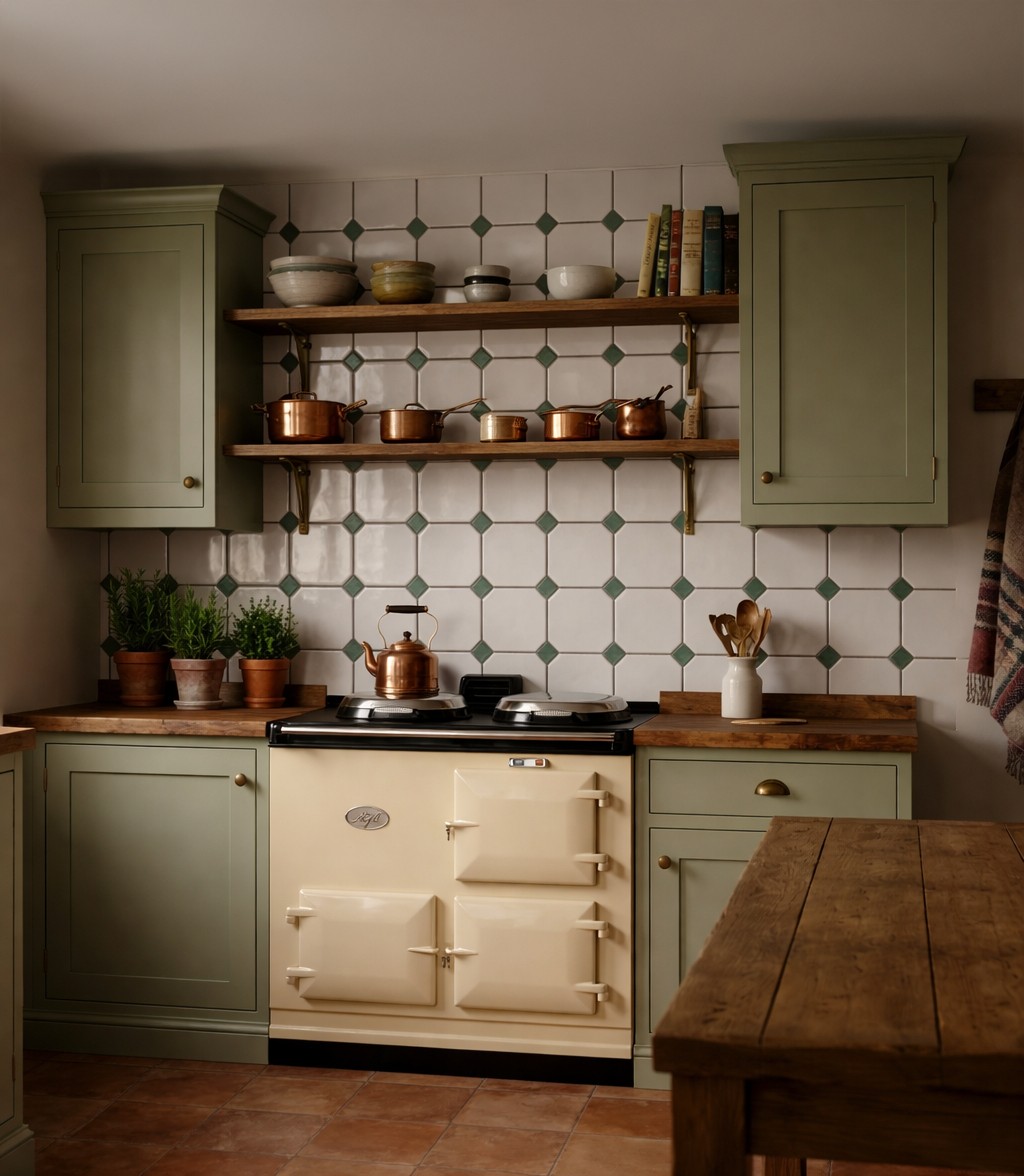Cotswolds English White Gloss Octagon Ceramic Wall Tile 150x150mm with Racing Green Taco (Insert)