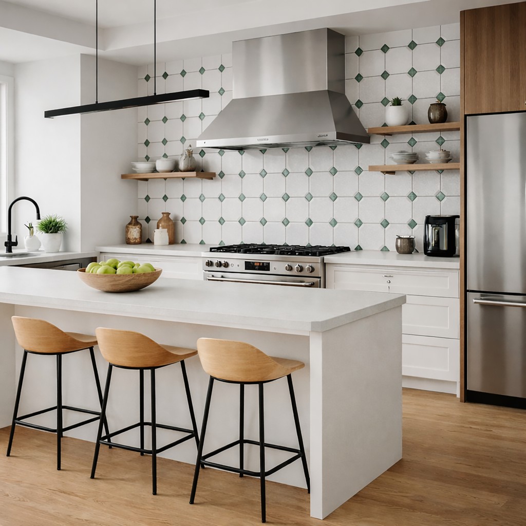 Cotswolds English White Matt Octagon Ceramic Wall Tile 150x150mm with Racing Green Taco (Insert)
