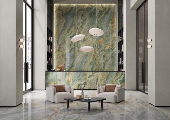 An extra-large format porcelain tile that defines grandeur and statement living. The decadent large format tile features rich veining which adds energy and interest to any project.