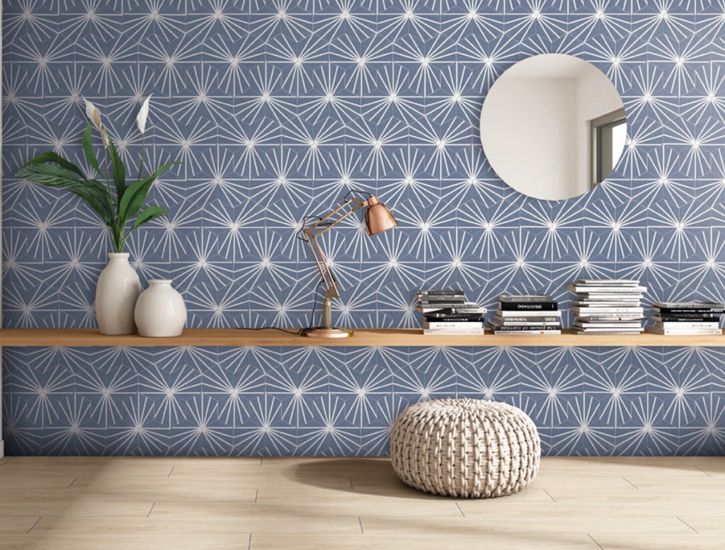 Lily 5 is the latest in on-trend tile design inspired by a lily pad effect whereby the pattern can be rotated to offer six striking effects for the creation of interiors at its finest. The collection is suitable for walls, floor, indoors and the outdoors with a PTV 36+ for slip resistance. A distinct and versatile glazed porcelain tile collection, part of a palette of eight on-trend base colours and seven decors, which truly represent a modern approach to encaustic and geometric tile design.