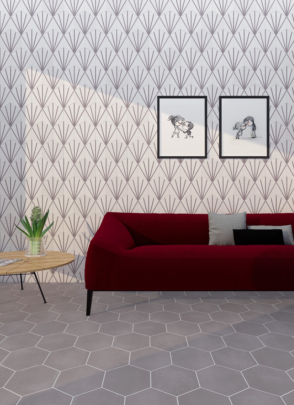 Lily 5 is the latest in on-trend tile design inspired by a lily pad effect whereby the pattern can be rotated to offer six striking effects for the creation of interiors at its finest. The collection is suitable for walls, floor, indoors and the outdoors with a PTV 36+ for slip resistance. A distinct and versatile glazed porcelain tile collection, part of a palette of eight on-trend base colours and seven decors, which truly represent a modern approach to encaustic and geometric tile design.