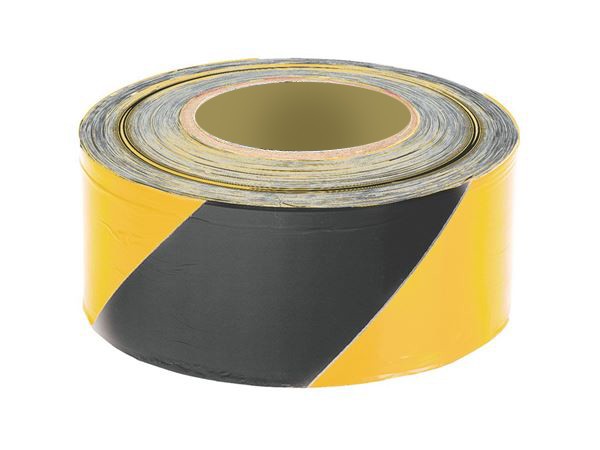 Plastic Barrier Tape Black Yellow 70mm x 500mtr Roll, For marking-out and securing area's prohibited for general use.