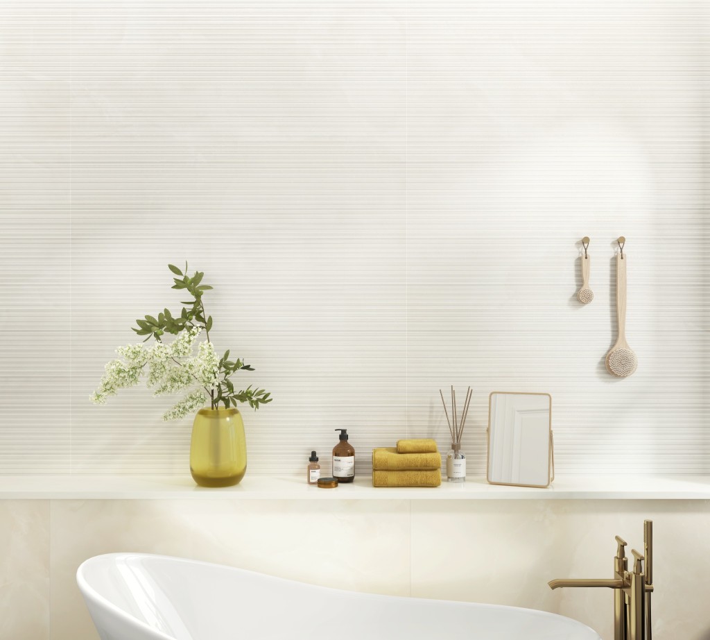 Sorrento Ivory Decor Silk Porcelain Wall and Floor Tile 600x1200mm